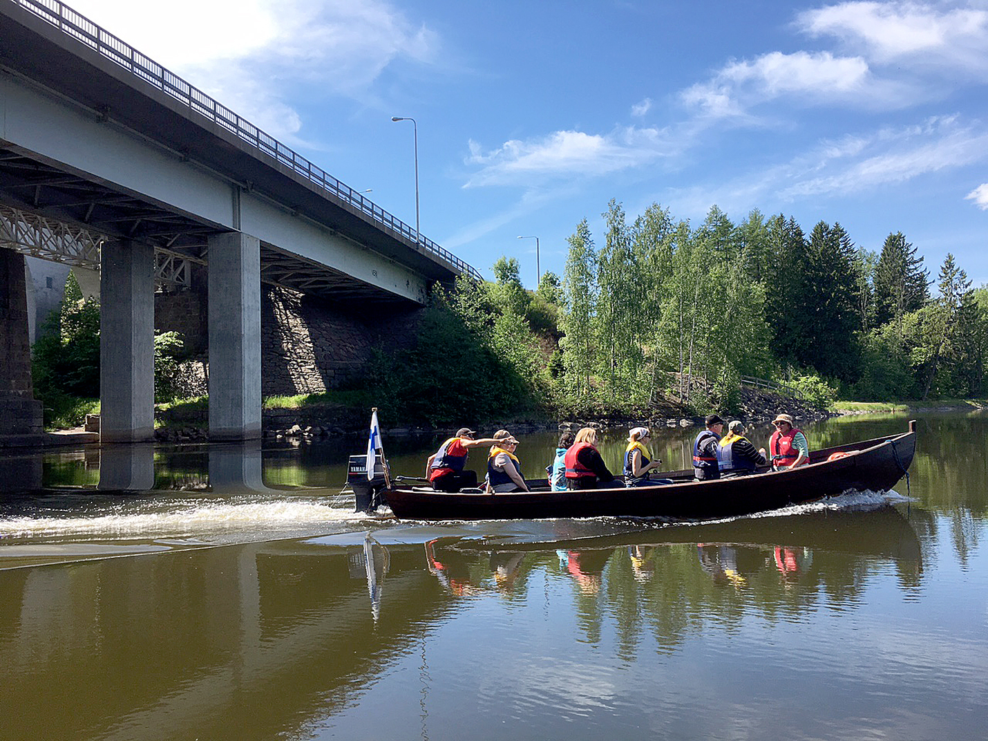 Herkutteluhetken jälkeen odottaa mielenkiintoinen veneretki Kymijoelle. Reinon Hemmilän värikäs opastus vie sinut vaikuttavan Kymijoen historiaan - joen, joka oli lähes 70 vuotta kolmen valtakunnan rajajokena. Erilaiset tarinat paikallishistoriasta antavat uuden kuvan Kouvolasta. Olet lähellä kaupungin keskustaa ja kuitenkin maaseudulla.