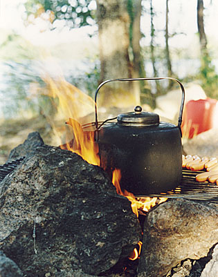 Riitta on valmistanut herkulliset nuotioleivät ja lumpeenvalkoisen kakun ja nautimme niitä nuotiokahvin kera ajatuksia vaihtaen.